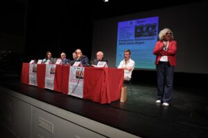 Nelle foto di Federico Vecchiatini e Stefania Andreotti: il tavolo dei relatori; l’intervento della mamma e del papà di Federico Aldrovandi; la presidente dell’Associazione stampa Ferrara, Antonella Vicenzi, con i giornalisti Daniele Predieri e Nicola Bianchi; l’intervento del segretario generale aggiunto della Fnsi, Matteo Naccari; il saluto del presidente di Aser, Paolo Maria Amadasi; uno scorcio della platea (si riconoscono, da sinistra, la senatrice Cucchi, l’avvocato Anselmo, il vicepresidente dell’Ordine dei giornalisti dell’Emilia-Romagna, Alberto Lazzarini e il presidente Silvestro Ramunno) e Federico Aldrovandi.