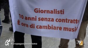 “Solo il giornalismo di qualità, dignitosamente retribuito, garantisce la democrazia”. Lo ha affermato Paolo Maria Amadasi, presidente di Aser, dialogando su La7 con Diego Bianchi (“Zoro”) durante la puntata di “Propaganda Live” andata in onda nella serata di venerdì 6 marzo 2026.  Amadasi era stato intervistato a Sanremo, davanti al Teatro Ariston, nella giornata di apertura del Festival, in occasione del flash-mob organizzato dalla Federazione nazionale della Stampa Italiana per chiedere il rinnovo del Contratto di lavoro Fieg-Fnsi.  Nella circostanza, Aser era presente con una delegazione composta anche da Matteo Naccari, consigliere nazionale e segretario generale aggiunto della Fnsi; dal tesoriere Federico Frighi e da Paolo Marino (cdr di Libertà).