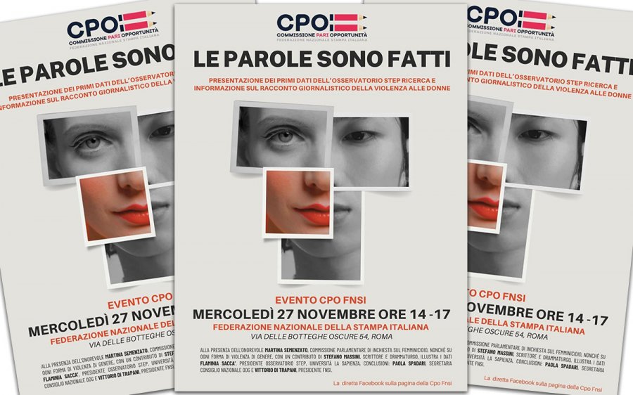 ‘Le parole sono fatti’. Questo il titolo scelto dalla Commissione pari opportunità della Federazione nazionale della Stampa italiana per l’evento durante il quale – mercoledì 27 novembre 2024 nella sede della Fnsi a Roma – la Cpo presenterà i primi dati dell’Osservatorio Step – Ricerca e Informazione sul racconto giornalistico della violenza alle donne. L’appuntamento è alle 14, in via delle Botteghe Oscure, 54.